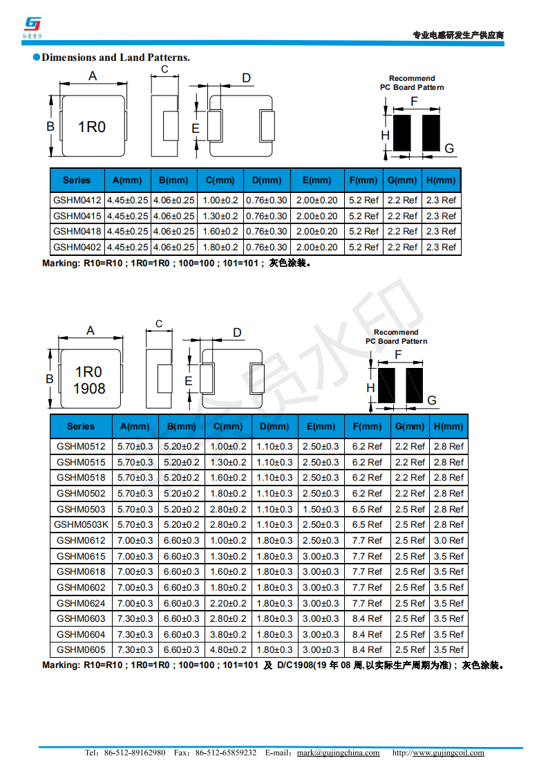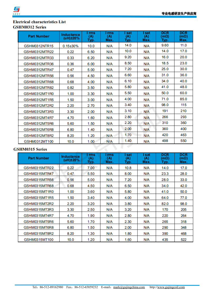 谷景GSHM一體成型電感的型號(hào)有:03系列尺寸為3.5*3.2*1.8、04系列尺寸為4.45*4.06*1.8、05系列尺寸為:5.70*5.20*2.80、06系列的尺寸為:7.30*6.60*4.8、10系列的尺寸為11*10*4.8、12系列的尺寸為:13.5*12.5*6.2。尺寸齊全,適合各種不同的電路。